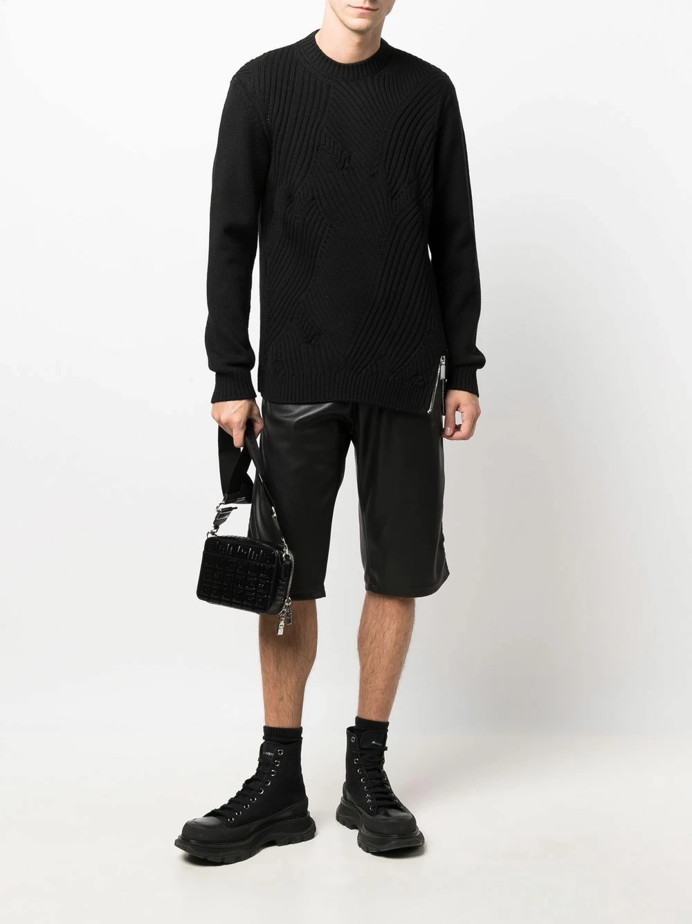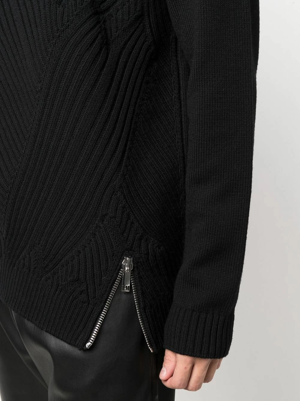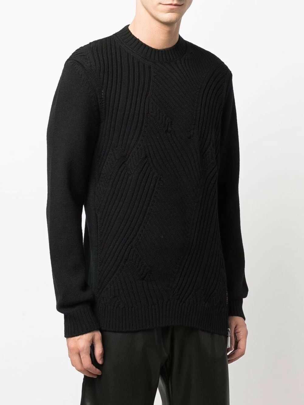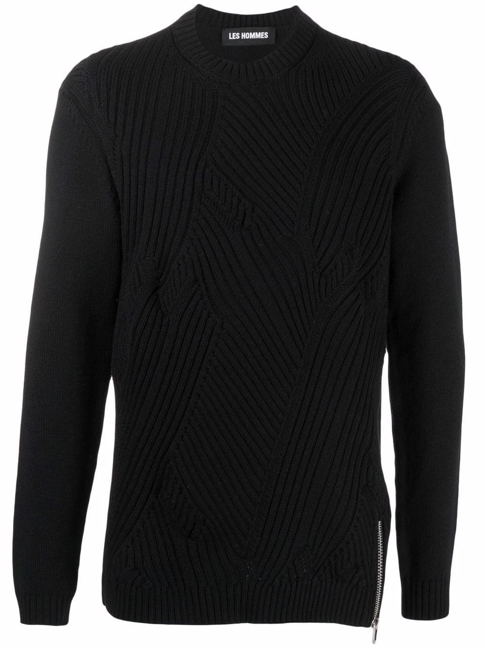 Presented in a black colourway, this jumper from Les Hommes aligns with the label’s innovative spirit. Spun from 100% virgin wool, it is knitted in distinct directions, creating a patchwork effect.