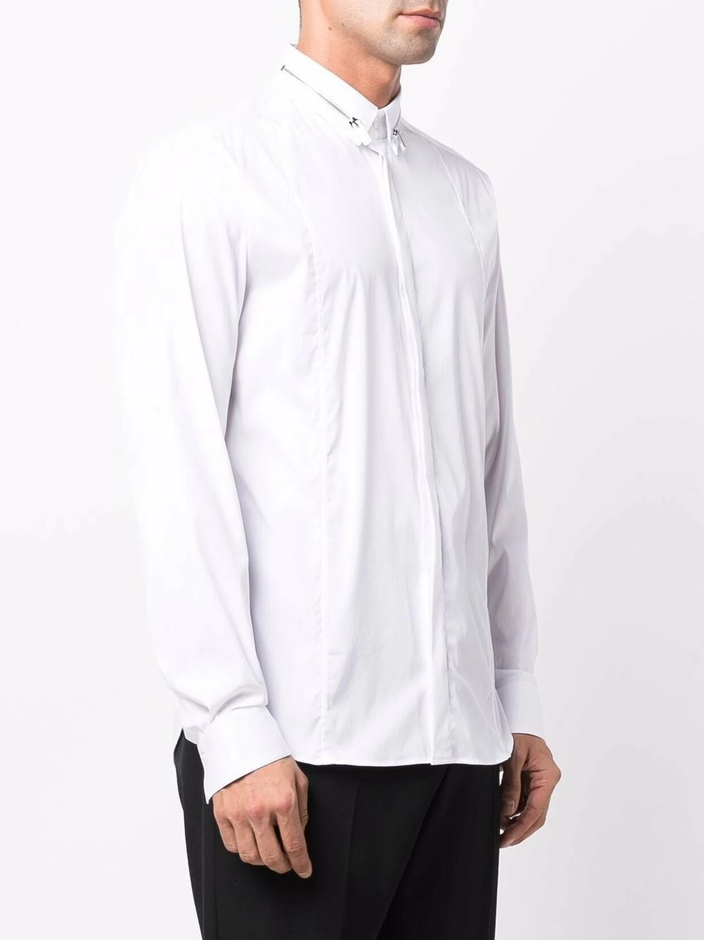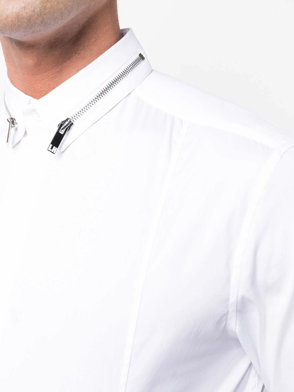 Les Hommes’ focus on creating innovative and opulent designs is showcased in this shirt. Featuring a classic long-sleeve silhouette in a tonal colourway, silver-tone hardware zip detailing around the collar adds an innovative and contemporary element to the garment.Â