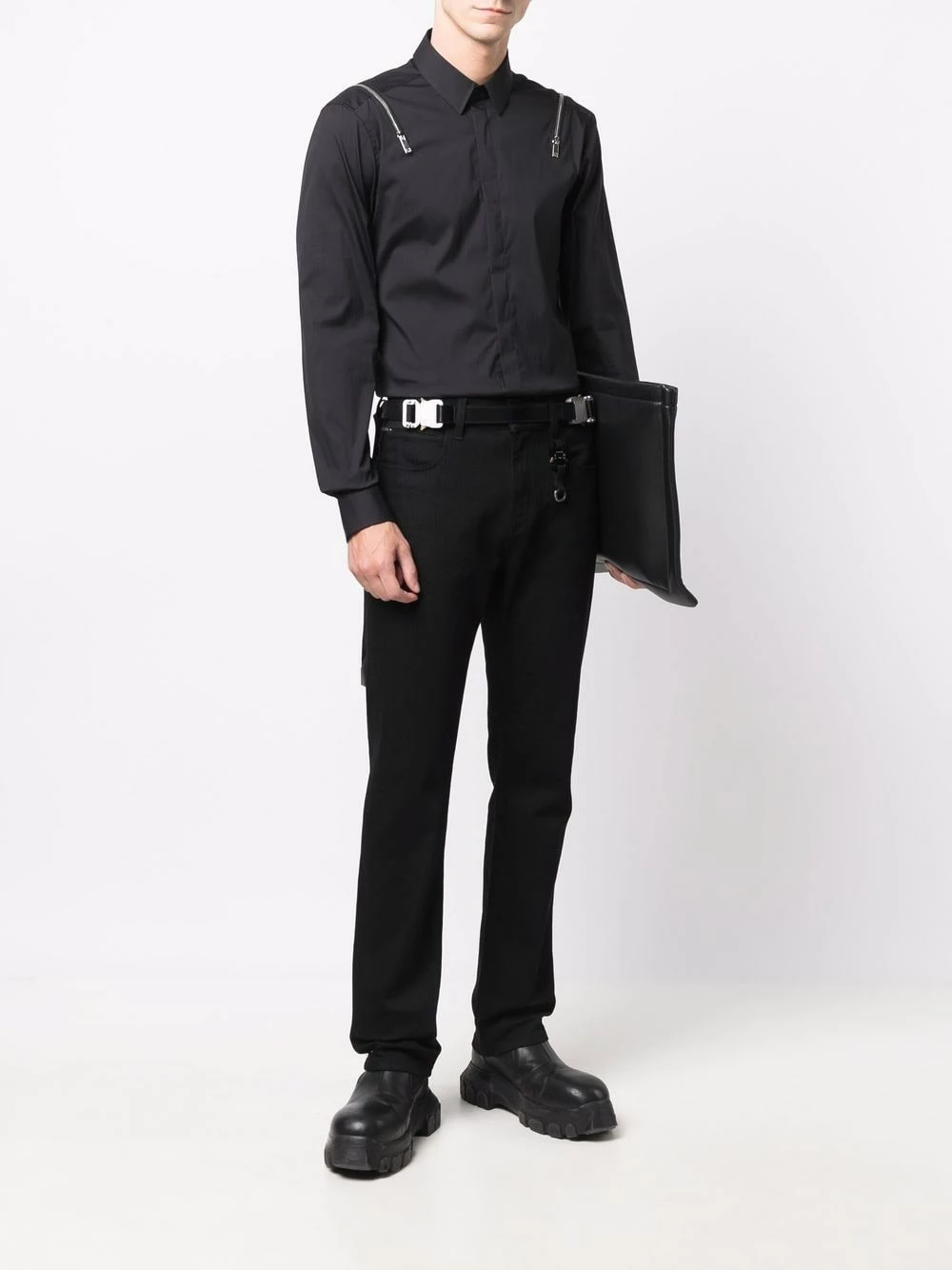 Les Hommes is famous for adding innovative details to classic pieces, as is evidenced by this long-sleeve shirt. In a black colourway, this slim-cut piece is distinguished by the decorative zip detailing at the shoulders.